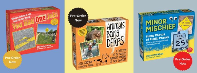The next editions of You Had One Job!, Animals Being Derps, and the all-new Minor Mischief calendars are on their way to a store near you.